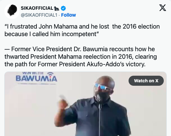 Former Vice President, Dr Mahamudu Bawumia, narrated how the role he played in the 2016 election campaign helped Akufo-Addo become President