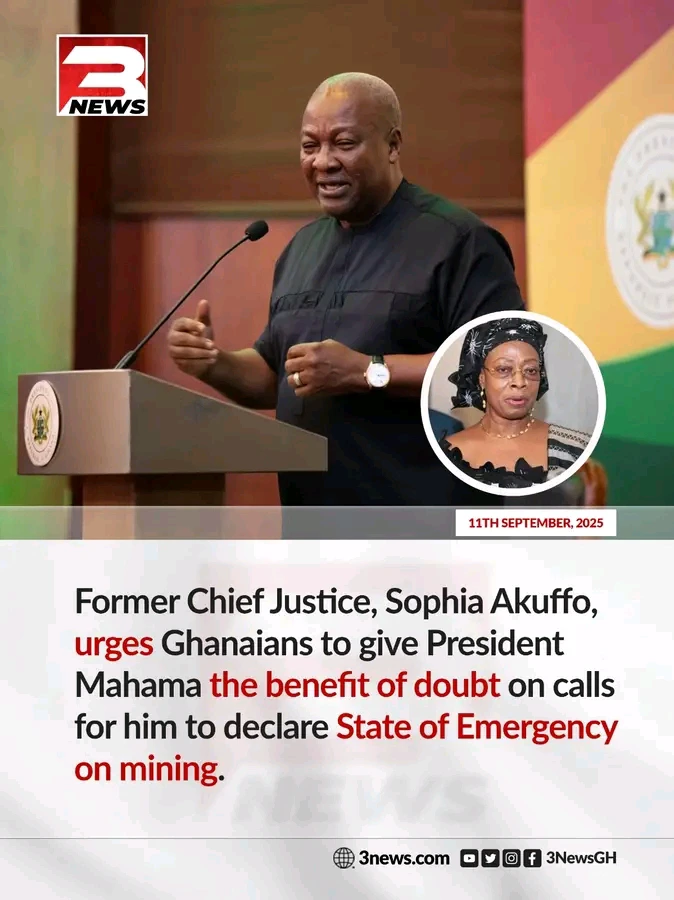 As he considers declaring a state of emergency to address the threat of illegal mining, Justice Akuffo urged the people to give former President John Dramani Mahama the benefit of the doubt.